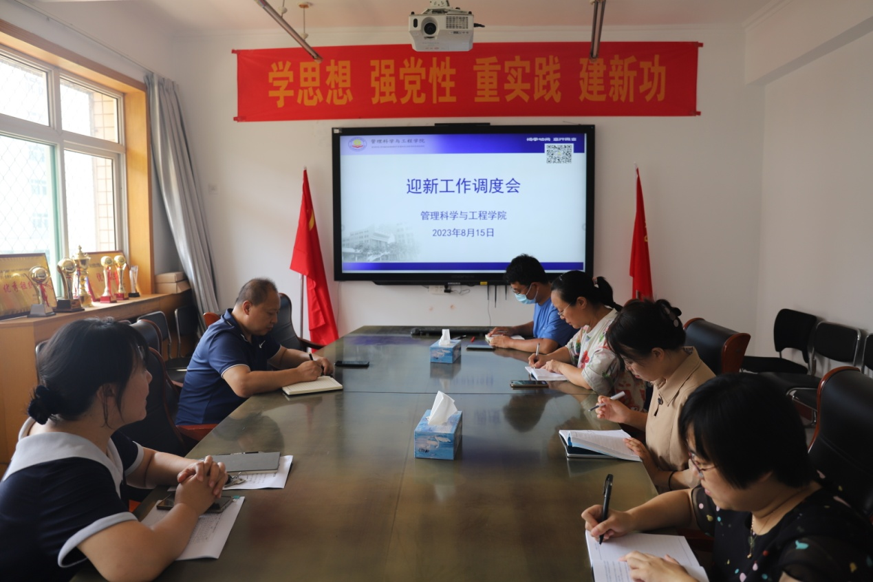 2023年8月15日,macau新葡京(中国)唯一官方网站 在会议室召开迎新工作调度会,党委书记王剑彪出席,全体辅导员参加。会议由党委副书记李丽主持。