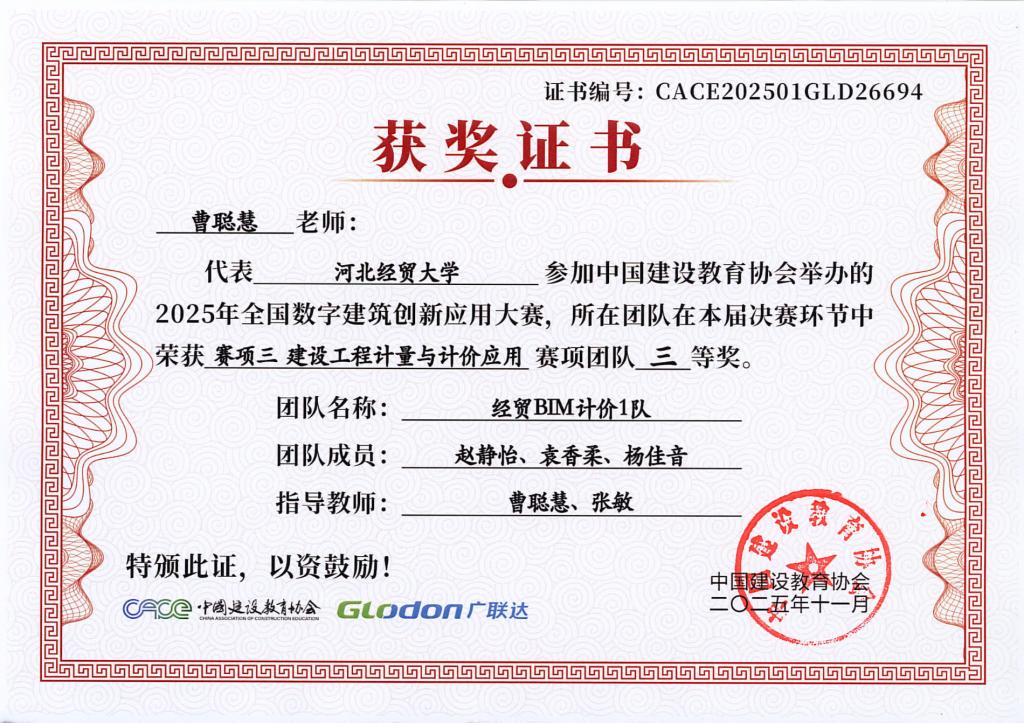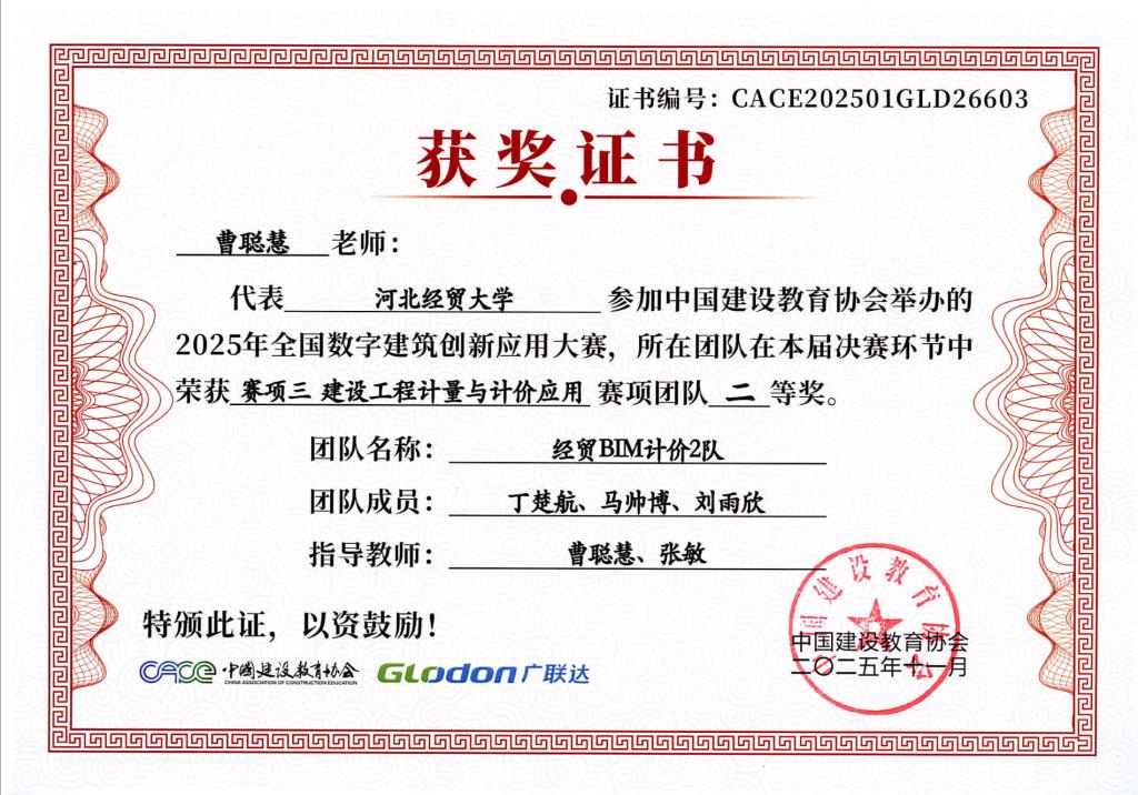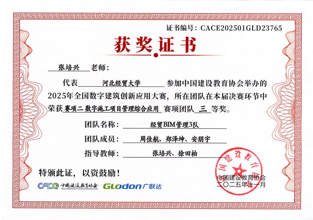 工程管理系学子在本科组别中取得了优异成绩,荣获全国一等奖1项,二等奖3项,三等奖3项。
