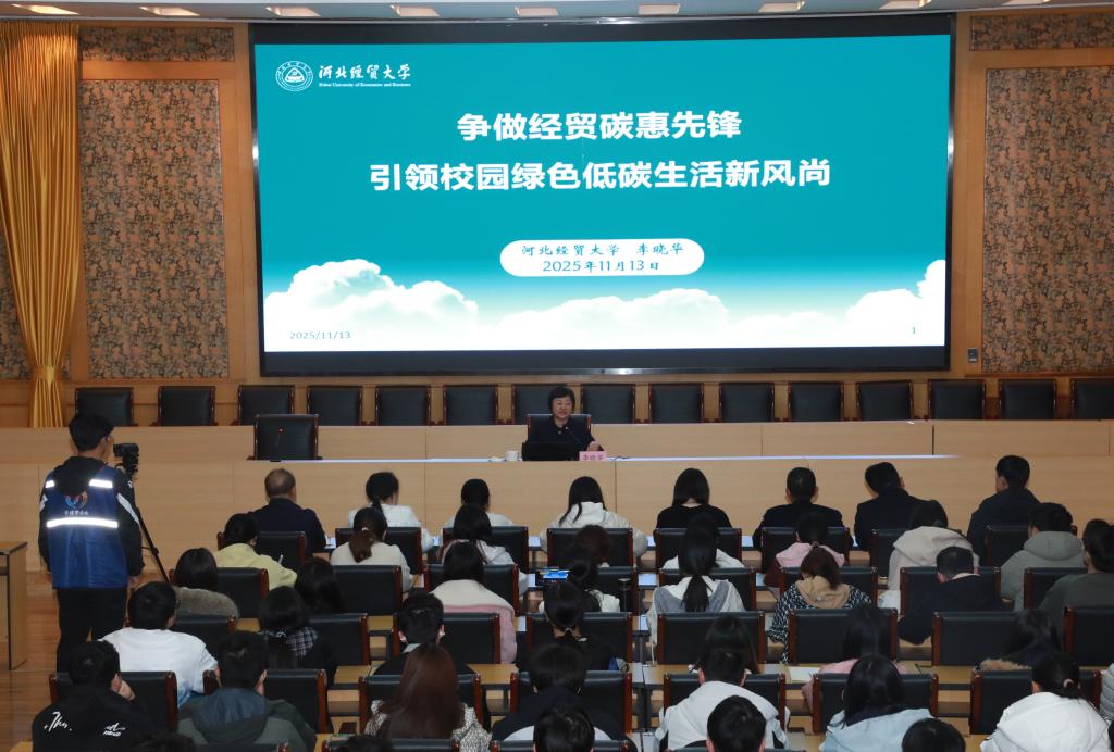 11月13日下午,校党委书记李晓华以“争做经贸碳惠先锋,引领校园绿色低碳生活新风尚”为主题,为macau新葡京(中国)唯一官方网站
