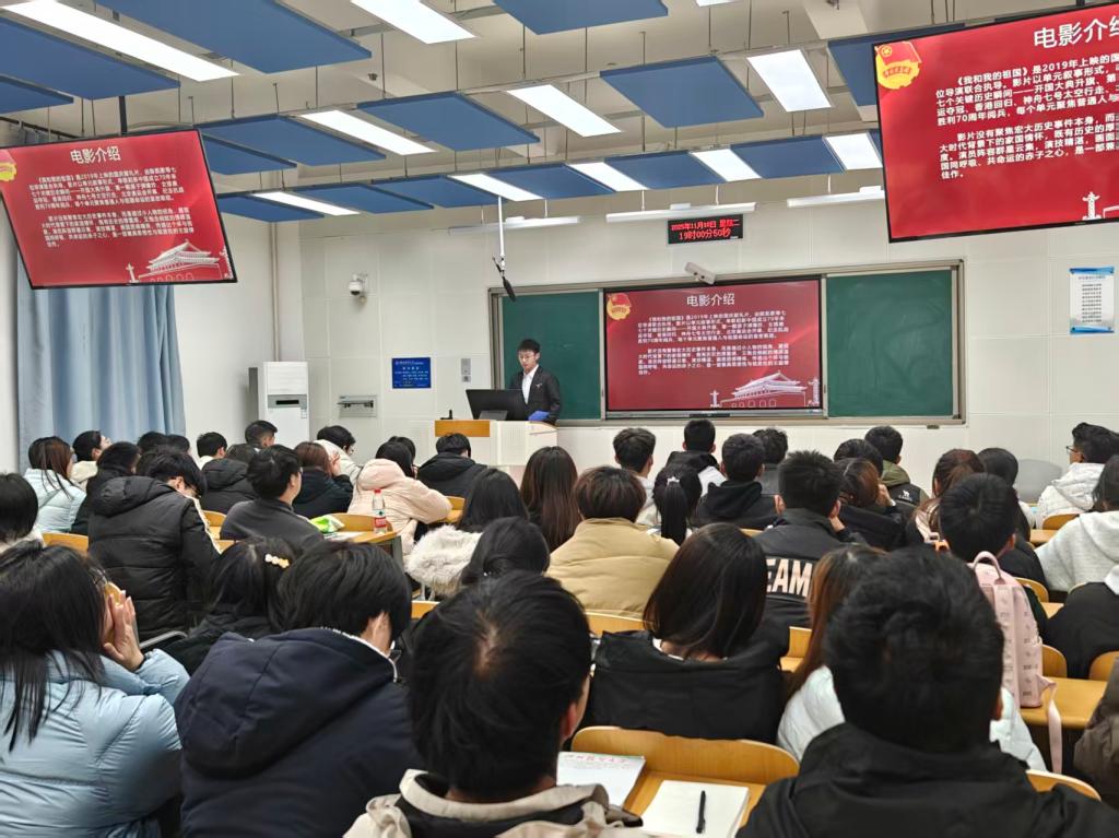 活动现场,学员们沉浸式走进影片中七个关键历史瞬间。从开国大典升旗的庄严时刻到神舟七号太空行走的振奋瞬间,从女排奥运夺冠的荣耀时刻到香港回归的历史瞬间,影片以单元叙事的独特形式,通过小人物的视角串联起新中国成立70年来的发展历程,生动展现了个人命运与国家命运的紧密联结。细腻的情感表达、精良的画面质感与演员们的精湛演绎,让学员们深刻体会到蕴藏在平凡故事中的家国情怀与奉献精神,更直观理解了“个人理想融入国家发展大局”的深刻内涵。