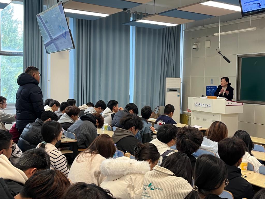 在经验分享中,王俊肖结合三十余年从业积淀,为新生们的专业学习与个人成长提供了宝贵建议。她勉励大家要夯实专业基础,争做“有理想、敢担当、能吃苦、肯奋斗的新时代好青年”。随后的互动环节气氛热烈,同学们围绕专业前景与职业规划踊跃提问,王总一一给予了细致解答。