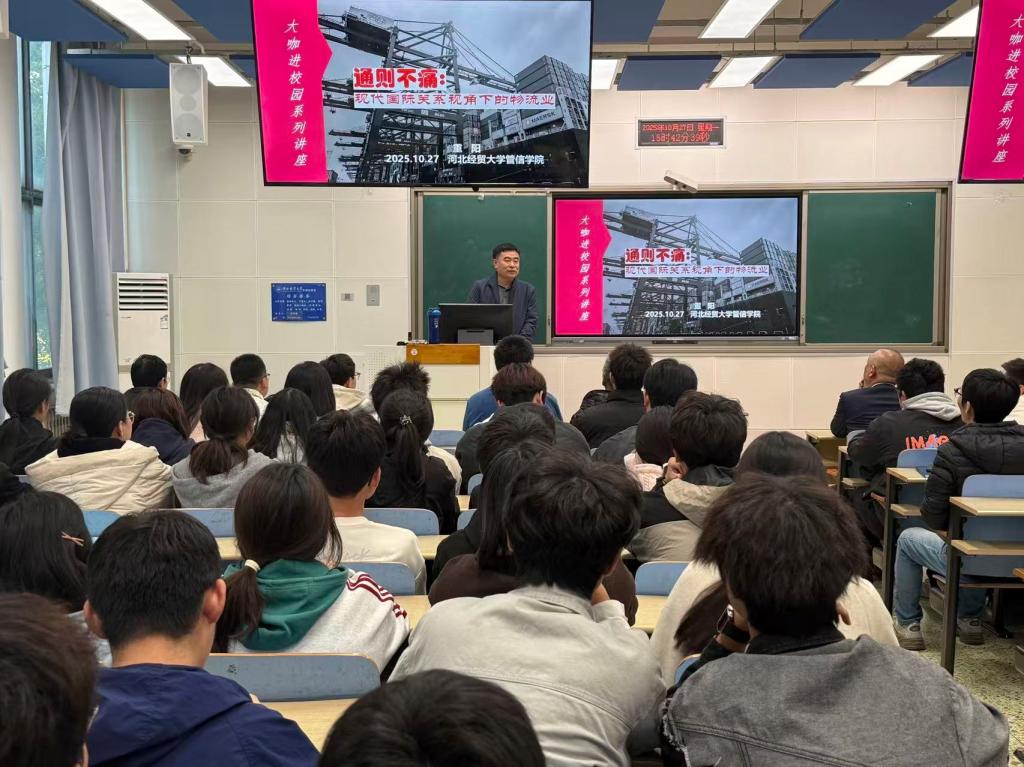 教师、MEM研究生和物流系本科学子共计一百余人带来了题为《通则不痛:现代国际关系视角下的物流业》的主题讲座。