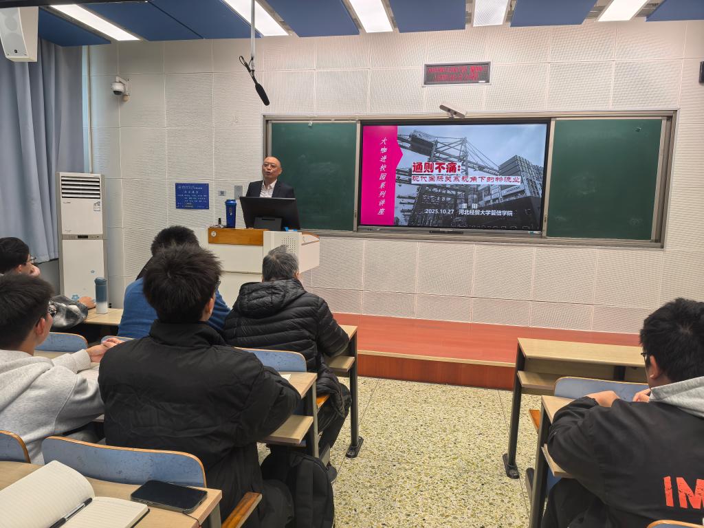 10月27日下午,中国第三届金声奖及第一届燕赵文化英才获得者,河北广播电视台首席评论员、正高级编审重阳老师来到河北经贸大学北三教B203多媒体教室,为macau新葡京(中国)唯一官方网站